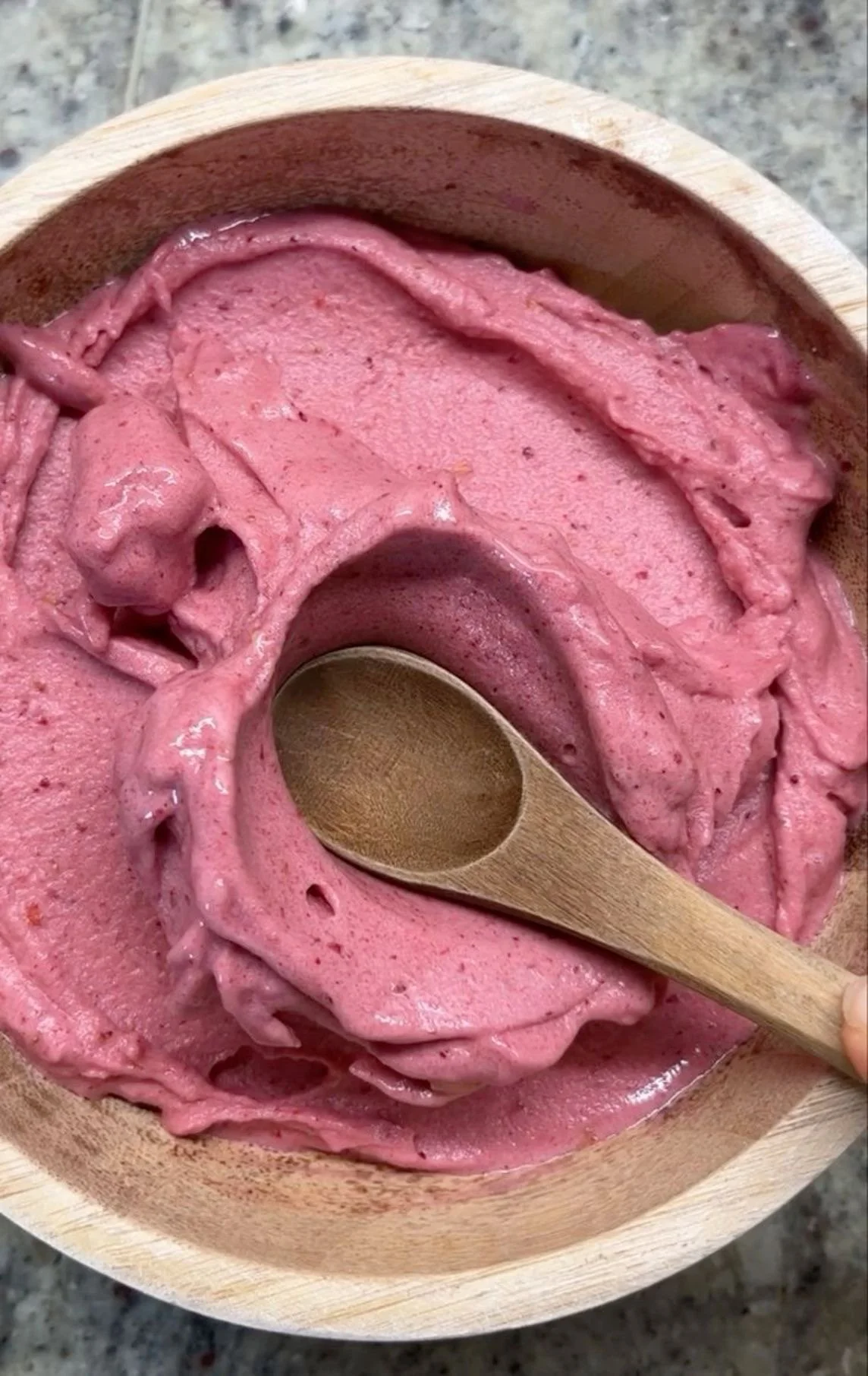 Serve with any topping, make sure to have something crunchy on it like coconut flakes, nuts or cocoa nibs as it is very smooth in texture.